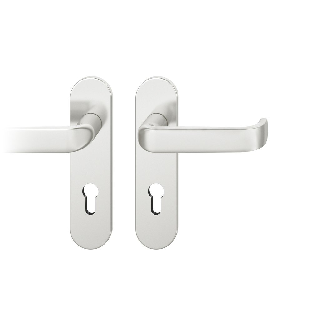 FS-AGL3-Drückergarnitur rechts, 9mm PZ 72mm ovales Kurzschild, max. 35°. TS 39-48mm, Aluminium naturfarbig