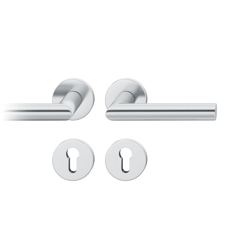 Produktinformationen "FSB für Feuerschutz Drückergarnitur 76 1076, Rosette, rund, Profilzylinder gelocht, Vierkant 9mm, DIN Rechts, Türstärke 39 - 48mm, mit Stütznocken, edelstahl fein matt Ausgleichslager® 3"