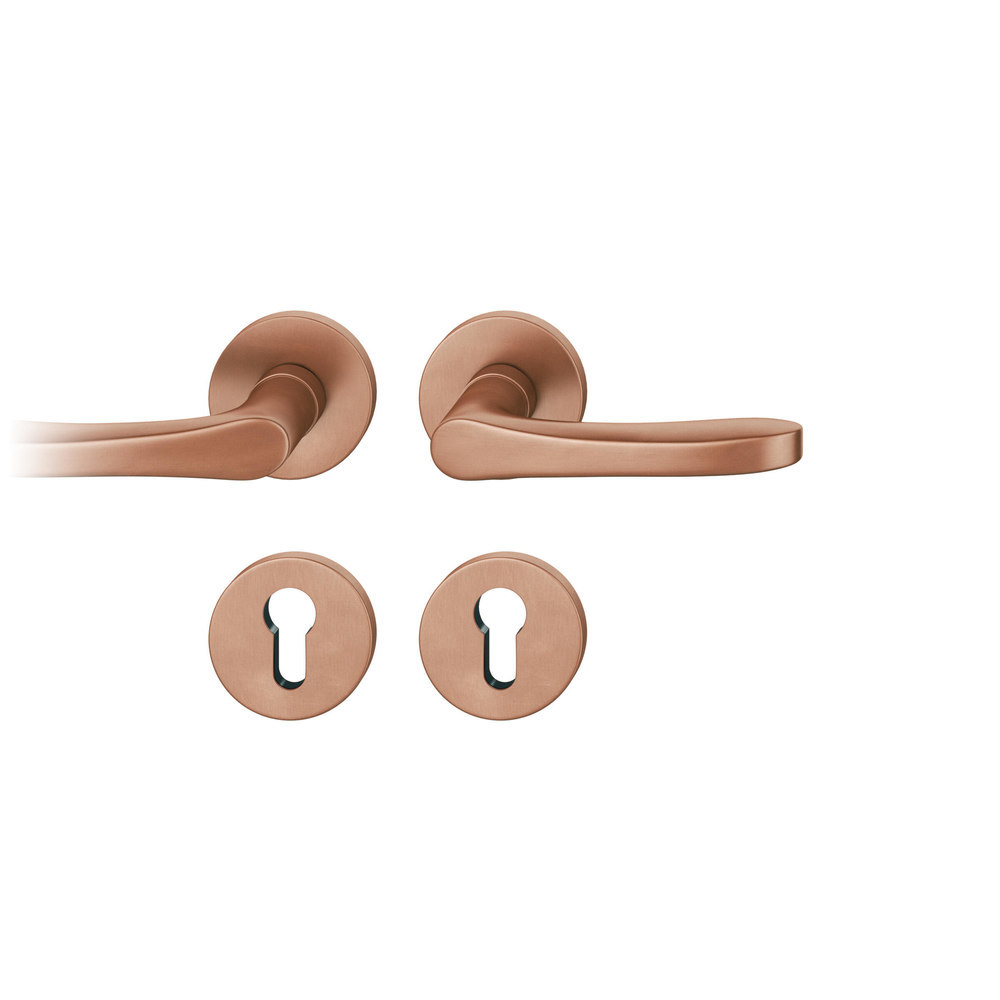 Produktinformationen "FSB für Feuerschutz Drückergarnitur 76 1106, Rosette, rund, Profilzylinder gelocht, Vierkant 9mm, DIN Rechts, Türstärke 39 - 48mm, mit Stütznocken, hellbronze patiniert gewachst Ausgleichslager® 3"