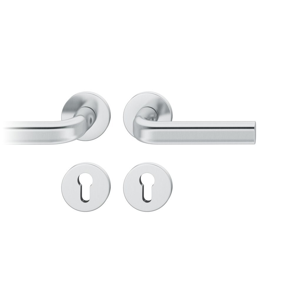 Produktinformationen "FSB für Feuerschutz Drückergarnitur 76 1242, Rosette, rund, Profilzylinder gelocht, Vierkant 9mm, DIN Links, Türstärke 39 - 48mm, mit Stütznocken, edelstahl fein matt Ausgleichslager® 3"