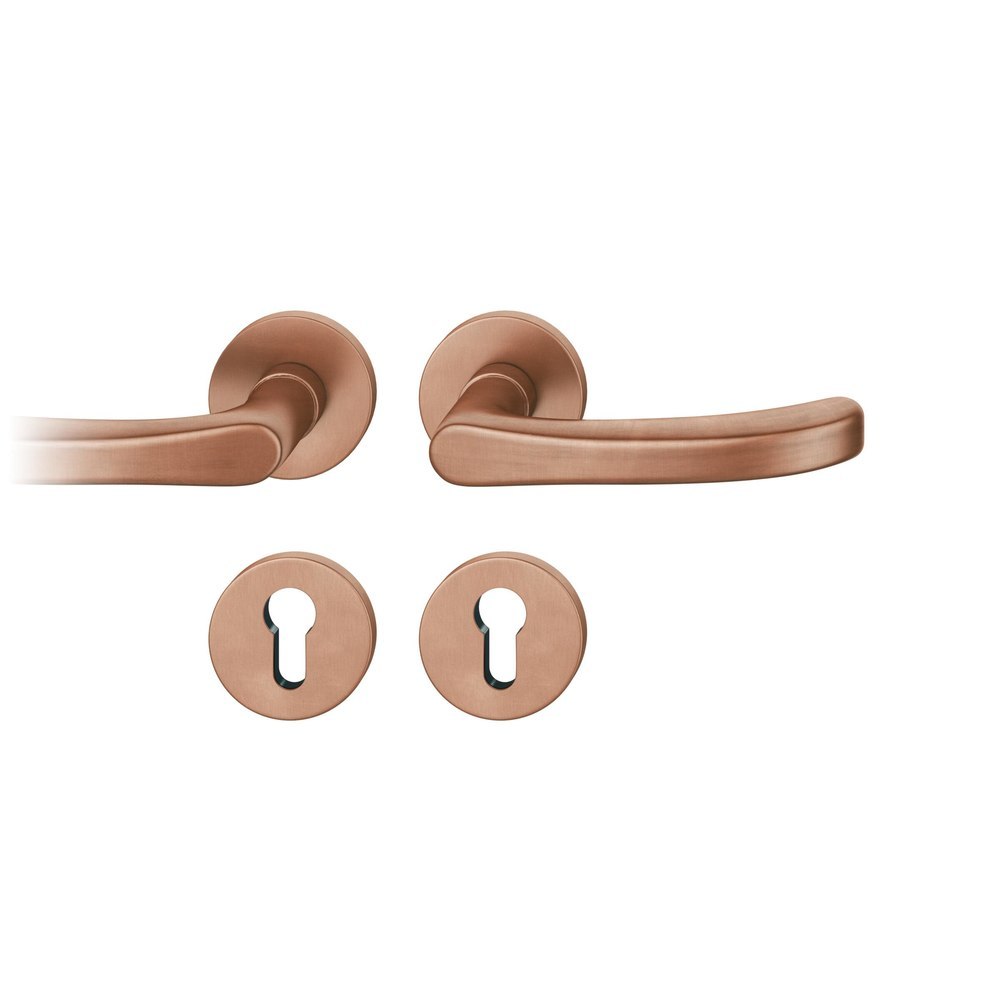 FSB für Feuerschutz Drückergarnitur 79 1043, Rosette, rund, Profilzylinder gelocht, Vierkant 9mm, DIN Links, Türstärke 39 - 48mm, mit Stütznocken, hellbronze patiniert gewachst Ausgleichslager® 3