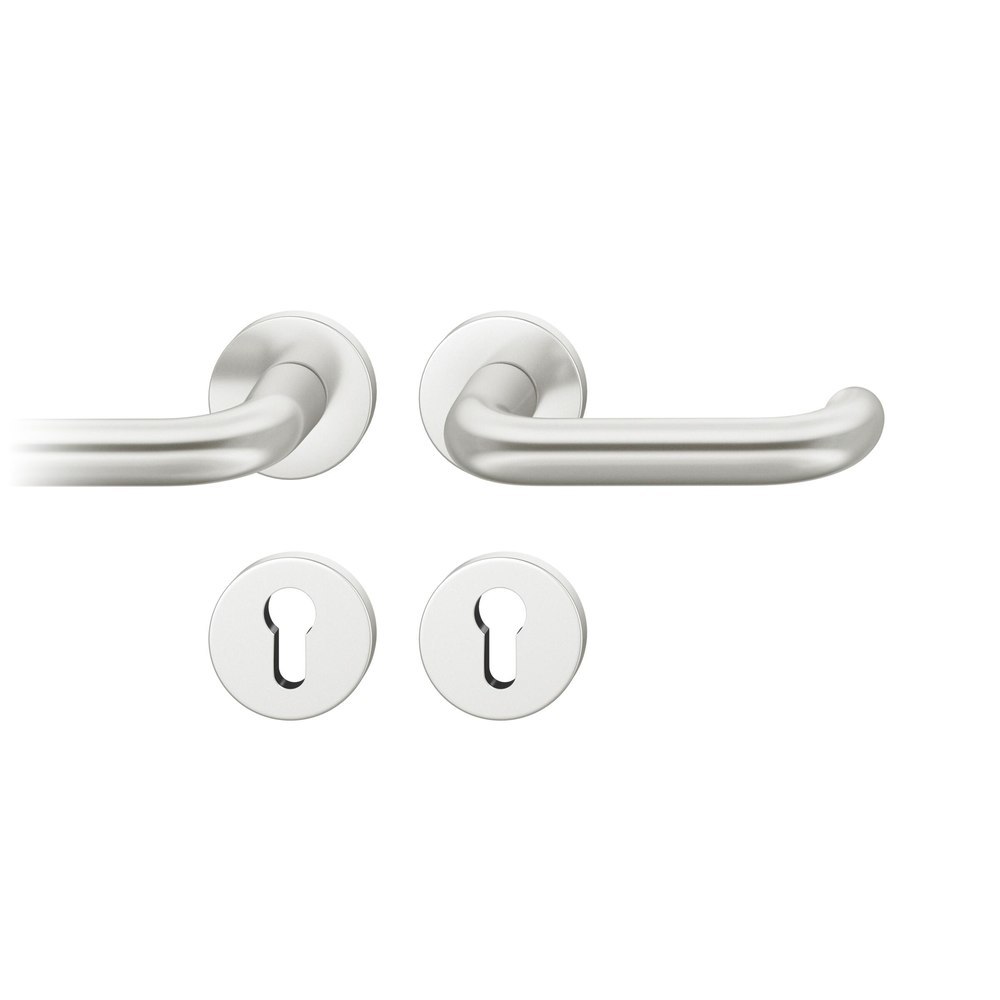 FSB für Feuerschutz Drückergarnitur 79 1146, Rosette, rund, Profilzylinder gelocht, Vierkant 9mm, DIN Links-Rechts, Türstärke 39 - 48mm, mit Stütznocken, naturfarben eloxiert Ausgleichslager® 3