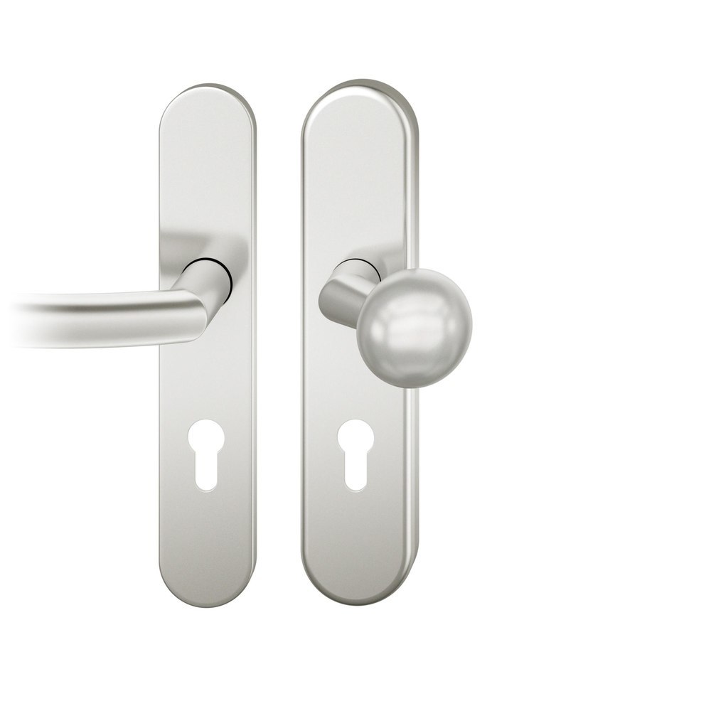 Produktinformationen "FSB für Feuerschutz Vollblatt Sicherheits-Wechselgarnitur 73 7578,Langschild,ES 1,ohne Zylinderabdeckung 72/9,DIN Links-Rechts,naturfarben eloxiert,Türstärke53-57,Kugelknopf gekröpft/gebogen"