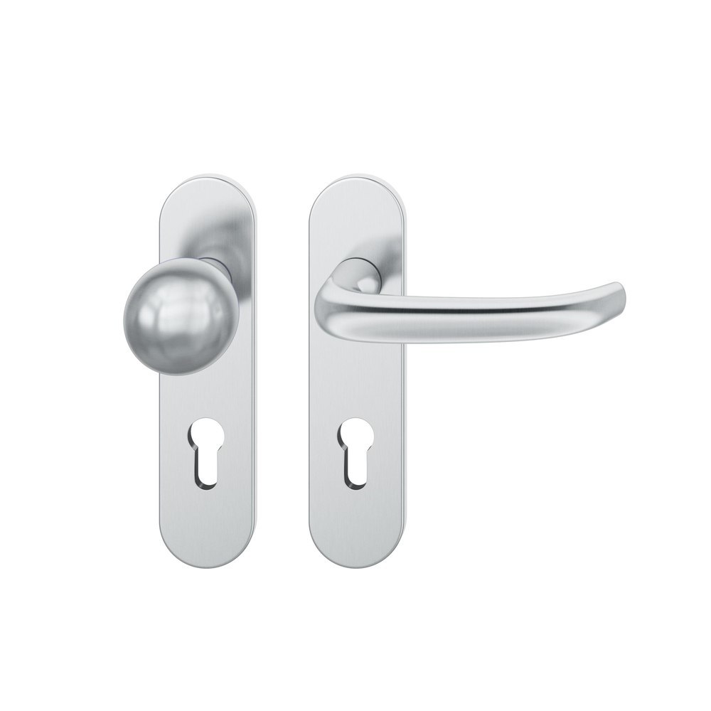 FSB für Feuerschutz Wechselgarnitur 79 1053, Kurzschild, oval, Profilzylinder gelocht, Entfernung 72mm, Vierkant 9mm, DIN Links, Türstärke 39 - 48mm, mit Stütznocken, edelstahl fein matt, Ausgleichslager® 3