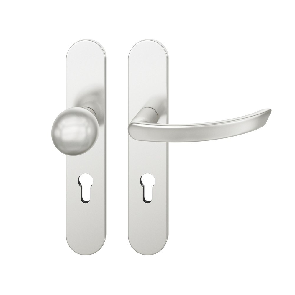FS-AGL3-Wechselgarnitur rechts 9mm PZ 72mm ovales Langschild EN 179. max. 35°. TS 39-48mm Aluminium naturfarbig