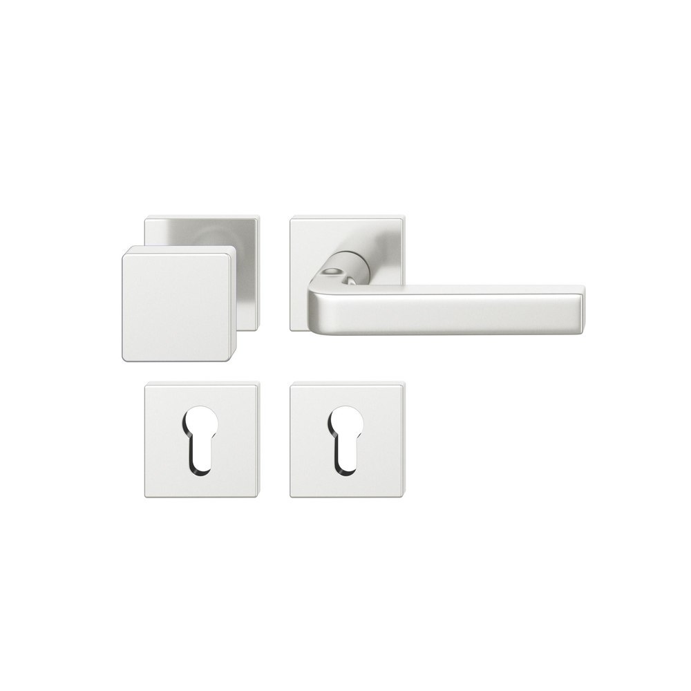 FSB für Feuerschutz Wechselgarnitur 76 1004, Ausführung Türgriff (außen) fest, Rosette, eckig, Profilzylinder gelocht, Vierkant 9mm, DIN Rechts, Türstärke 39 - 48mm, mit Stütznocken, naturfarben eloxiert Ausgleichslager® 3