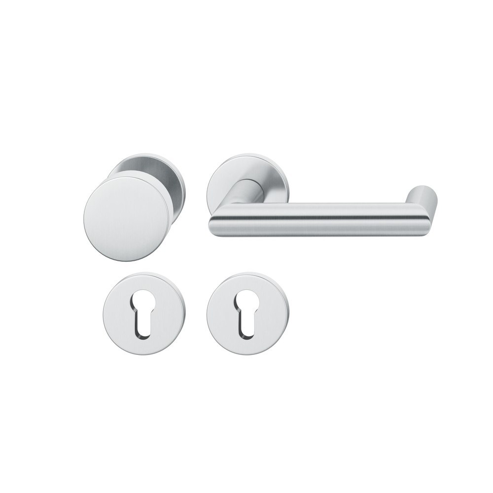Produktinformationen "FSB Wechselgarnitur 79 1016, Rosette, rund, Profilzylinder gelocht, Vierkant 8,5mm, DIN Links, TS 39 - 48mm, mit Stütznocken, grau, edelstahl fein matt, Knopf 0829"