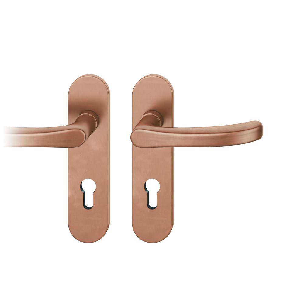 Produktinformationen "FSB für Feuerschutz Drückergarnitur 79 1043, Kurzschild, oval, Profilzylinder gelocht, Entfernung 72mm, Vierkant 9mm, DIN Links, Türstärke 39 - 48mm, mit Stütznocken, hellbronze patiniert gewachst, Ausgleichslager® 3"