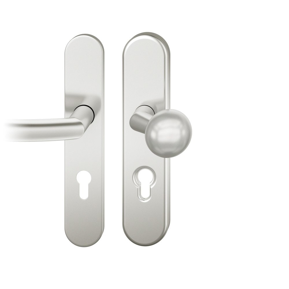 Produktinformationen "FSB für Feuerschutz Vollblatt Sicherheits-Wechselgarnitur 73 7578,Langschild,ES 1,ohne Zylinderabdeckung 92/9,DIN Links-Rechts,naturfarben eloxiert,Türstärke53-57,Kugelknopf gekröpft/gebogen"