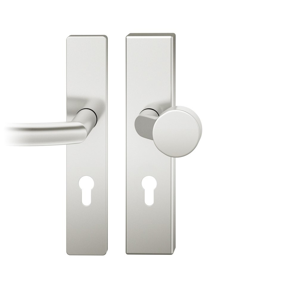 Produktinformationen "FSB für Feuerschutz Vollblatt Sicherheits-Wechselgarnitur 73 7579,Langschild,ES 1,ohne Zylinderabdeckung 72/9,DIN Links-Rechts,naturfarben eloxiert,Türstärke53-57,Flachknopf gekröpft/gebogen"
