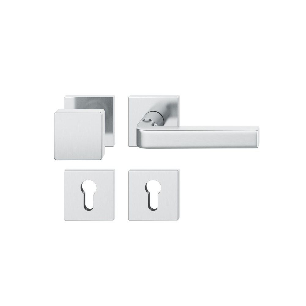 FSB für Feuerschutz Wechselgarnitur 76 1004, Ausführung Türgriff (außen) fest, Rosette, eckig, Profilzylinder gelocht, Vierkant 9mm, DIN Rechts, Türstärke 39 - 48mm, mit Stütznocken, edelstahl fein matt Ausgleichslager® 3