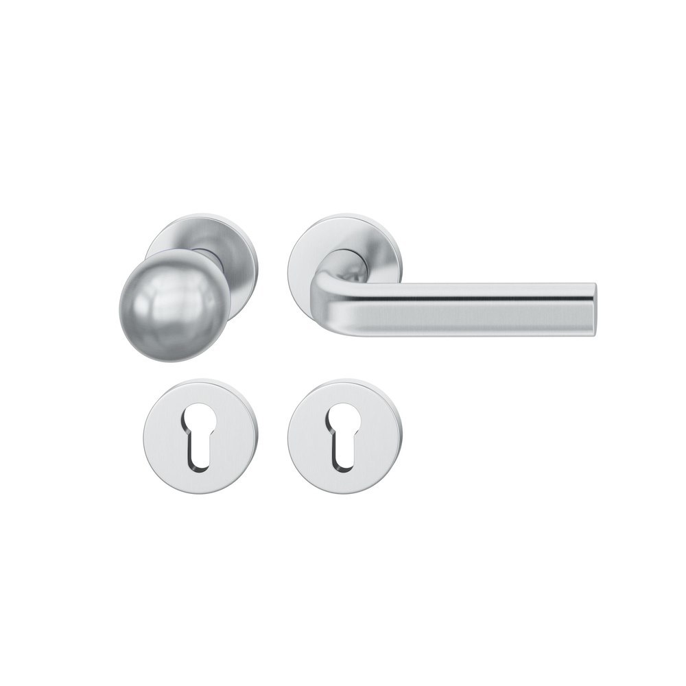 FSB für Feuerschutz Wechselgarnitur 76 1242, Ausführung Türgriff (außen) fest, Rosette, rund, Profilzylinder gelocht, Vierkant 9mm, DIN Rechts, Türstärke 39 - 48mm, mit Stütznocken, edelstahl fein matt Ausgleichslager® 3