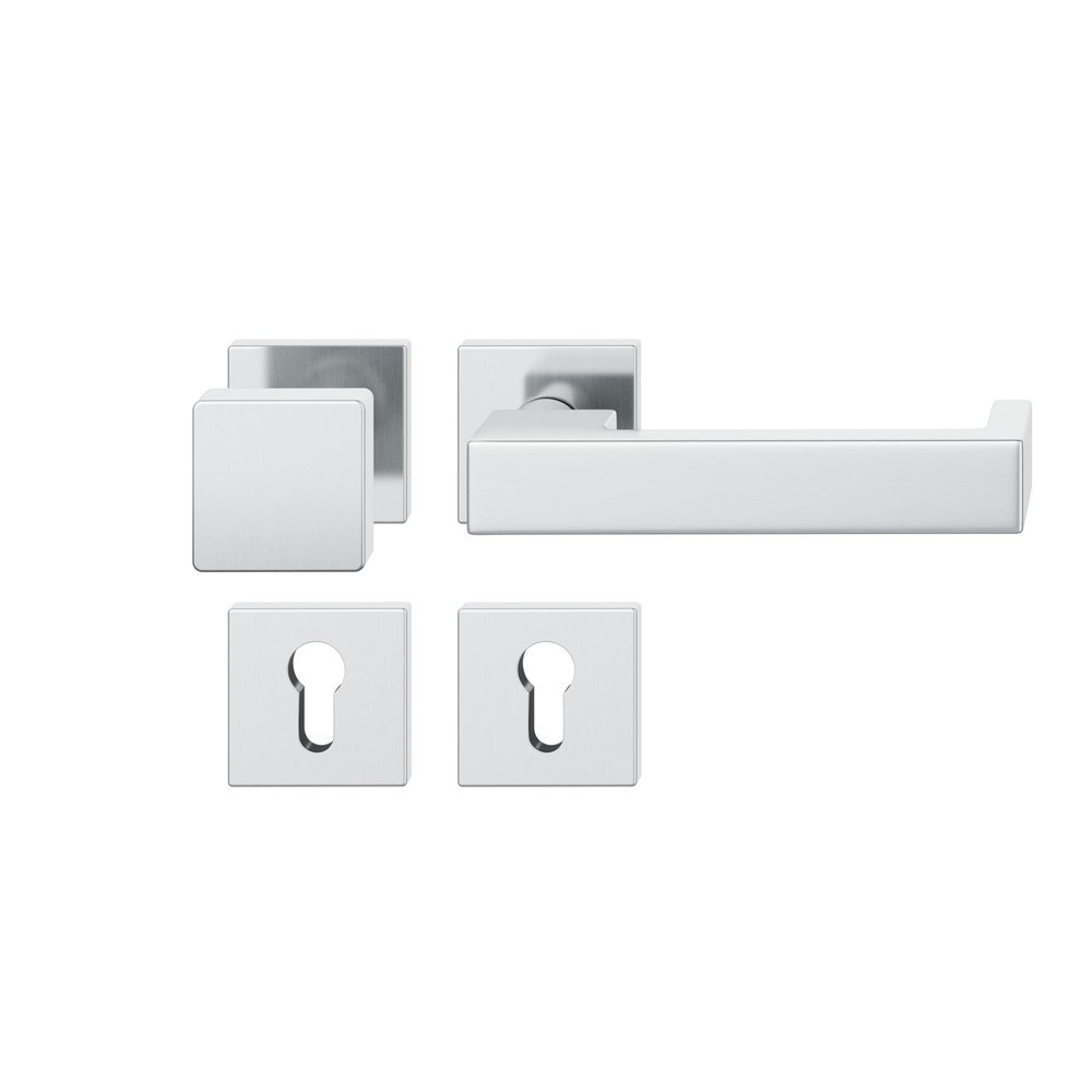 Produktinformationen "FSB für Feuerschutz Wechselgarnitur 79 1074, Ausführung Türgriff (außen) fest, Rosette, eckig, Profilzylinder gelocht, Vierkant 9mm, DIN Links, Türstärke 39 - 48mm, mit Stütznocken, edelstahl fein matt Ausgleichslager® 3"