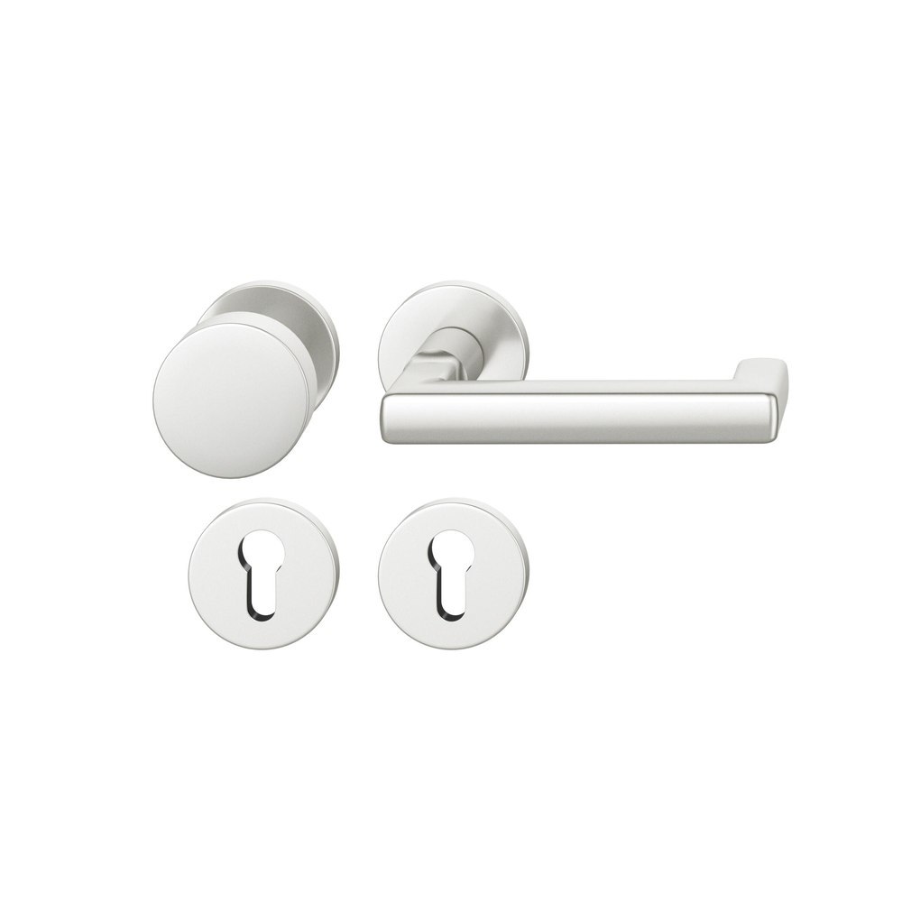 FS-AGL3-Wechselgarnitur rechts 9mm PZ Rundrosette Knopf 0829 EN 179. max. 35°. TS 39-48mm Aluminium naturfarbig