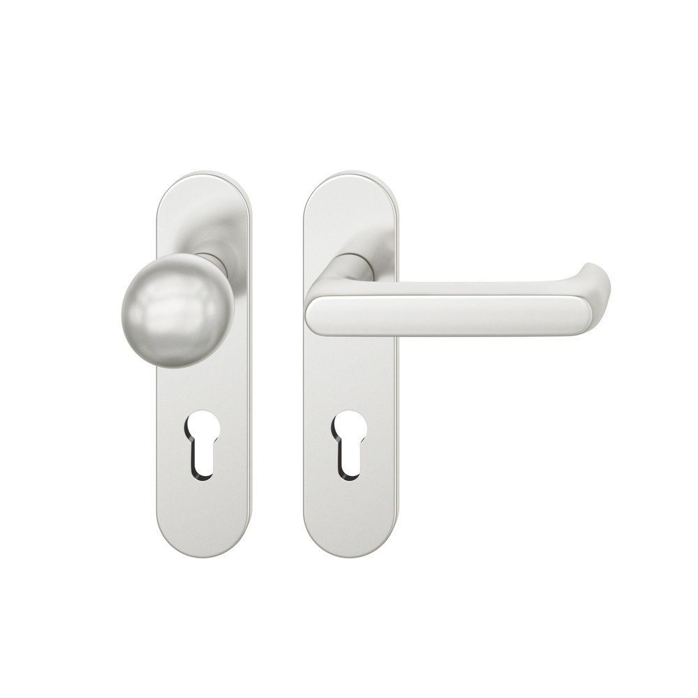 Produktinformationen "FSB für Feuerschutz Wechselgarnitur 79 1247, Kurzschild, oval, Profilzylinder gelocht, Entfernung 72mm, Vierkant 9mm, DIN Rechts, Türstärke 39 - 48mm, mit Stütznocken, naturfarben eloxiert, Ausgleichslager® 3"