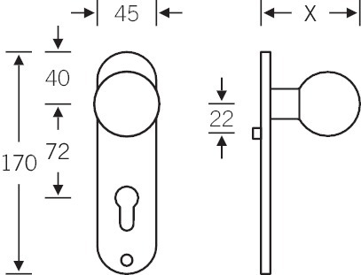 FSB Zimmertür Knopf, Abdeckung: auf Kurzschild, Form Abdeckung: oval, Lochung: Profilzylinder gelocht, Entfernung: 72 mm, Modellnummer: 19 1923, Material: aluminium, Farbton: naturfarbig, Oberfläche: eloxiert, Befestigungstechnik: ohne Stütznocken, Befestigungsart: sichtbar verschraubt, Lagerung: fest, Schildstärke: 7 mm, DIN-Richtung: DIN Links-Rechts, Befestigungssystem: Stiftverbindung, Türart: Außentüren, Türwerkstoff: Holz, stahl, Länge: 170 mm, Breite: 45 mm, Knopfbefestigung: Stabil-Wechselstift mit Rolle, Knopfform: Kugelform, Knopfdurchmesser: 50 mm, Knopfhöhe: 70 mm