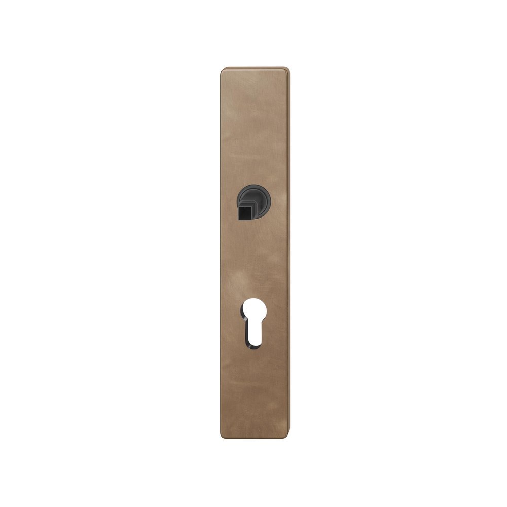 Produktinformationen "FSB Langschild ASL® 12 1410, außen/innen, eckig, mit Stütznocken, Profilzylinder gelocht, Entfernung 72mm, Türstärke min. 39mm, Türstärke max. 58mm, braun, dunkelbronze, patiniert gewachst"