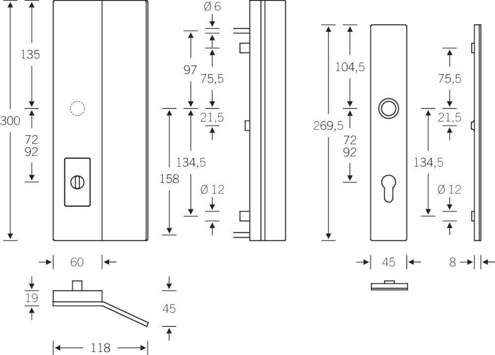 | Anschlagrichtung: | Drücker rechts zeigend |
