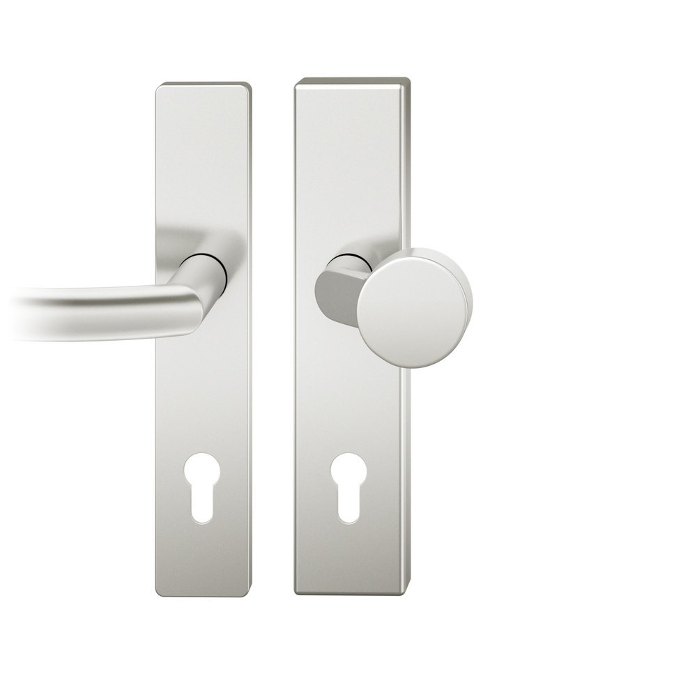 FSB Vollblatt Sicherheits-Wechselgarnitur 73 7379,Langschild,ES 1,ohne Zylinderabdeckung 92/10,DIN Links-Rechts,naturfarben eloxiert,Türstärke67-69,Flachknopf gekröpft/gebogen