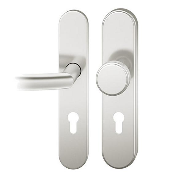 Der FSB 7382 Türgriff ist als Schutzgarnitur konzipiert. Die Schutzgarnitur ist wahlweise in Edelstahl oder Aluminium erhältlich. Dank des Zylinderziehschutzes eignet sich der FSB 7382 besonders zum Einsatz an Haus- und Wohnungseingangstüren und entspricht der Schutzklasse 2. Der Zylinderziehschutz ist für Zylinderüberstände von 8-15 mm ausgelegt.