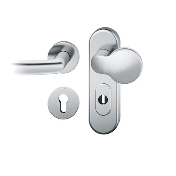Der FSB 7374 Türgriff ist als Schutzbeschlag konzipiert. Die Schutzgarnitur ist wahlweise in Edelstahl oder Aluminium erhältlich. Dank des Zylinderziehschutzes eignet sich der FSB 7374 besonders zum Einsatz an Wohnungseingangstüren und entspricht der Schutzklasse 2. Der Zylinderziehschutz ist für Zylinderüberstände von 8-15 mm ausgelegt.