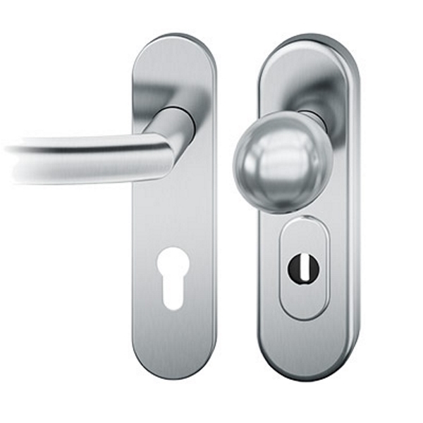 Der FSB 7377 Türgriff ist als Schutzgarnitur konzipiert. Die Schutzgarnitur ist wahlweise in Edelstahl oder Aluminium erhältlich. Dank des Zylinderziehschutzes eignet sich der FSB 7377 besonders zum Einsatz an Wohnungseingangstüren und entspricht der Schutzklasse 2. Der Zylinderziehschutz ist für Zylinderüberstände von 8-15 mm ausgelegt.