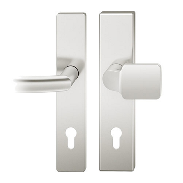 Der FSB 7383 Türgriff ist als Schutzgarnitur konzipiert. Die Schutzgarnitur ist wahlweise in Edelstahl oder Aluminium erhältlich. Dank des Zylinderziehschutzes eignet sich der FSB 7383 besonders zum Einsatz an Wohnungseingangs- und Hauseingangstüren und entspricht der Schutzklasse 2. Der Zylinderziehschutz ist für Zylinderüberstände von 8-15 mm ausgelegt.