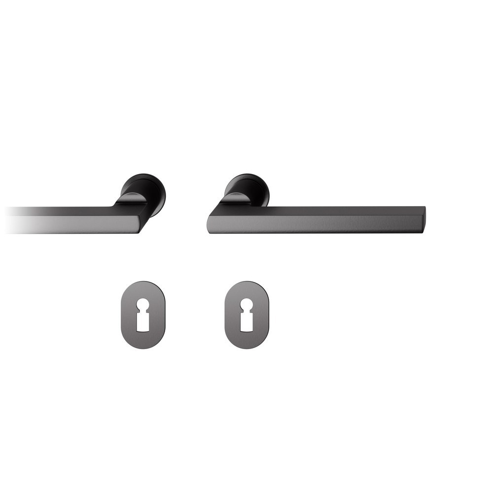 Produktinformationen "FSB Drückergarnitur 15 1035, Rosette, rund, Buntbart gelocht, Vierkant 8mm, DIN Links-Rechts, Türstärke 39 - 48mm, ohne Stütznocken, tiefschwarz, ähnlich RAL 9005 farbig kunststoffbeschichtet"