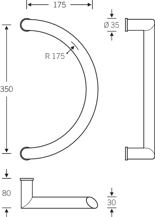 FSB Haustür Stoßgriff, Ausführung: gebogen, Modellnummer: 66 6652, Befestigungsabstand: 350 mm, Griffbreite: 175 mm, Grifftiefe: 80 mm, Material: edelstahl, Farbton: edelstahl, Oberfläche: fein matt, Befestigungsart: verdeckt verschraubt, DIN-Richtung: DIN Links-Rechts, Form: oval, Türwerkstoff: aluminium, Holz, Kunststoff, stahl
