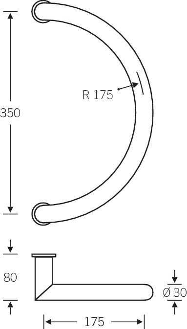 FSB Haustür Stoßgriff, Ausführung: gebogen, Modellnummer: 66 6653, Befestigungsabstand: 350 mm, Griffdicke: 30 mm, Griffbreite: 175 mm, Grifftiefe: 80 mm, Material: edelstahl, Farbton: edelstahl, Oberfläche: fein matt, Befestigungsart: verdeckt verschraubt, DIN-Richtung: DIN Links-Rechts, Form: rund, Türwerkstoff: aluminium, Holz, Kunststoff, stahl