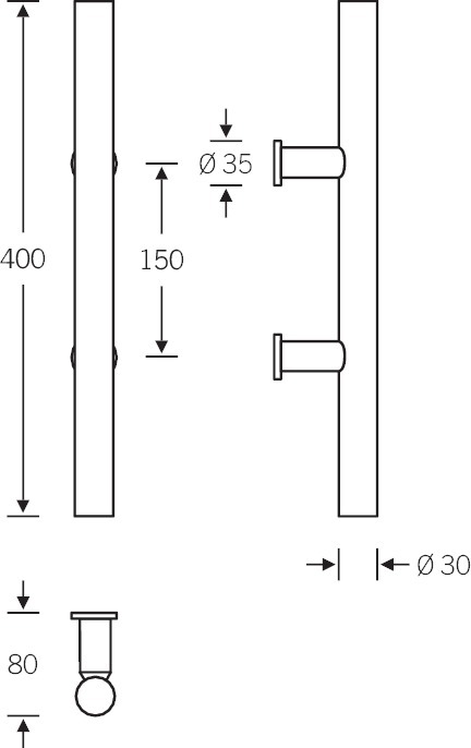 FSB Haustür Stoßgriff, Ausführung: gerade, Modellnummer: 66 6681, Befestigungsabstand: 150 mm, Griffdicke: 30 mm, Grifflänge: 400 mm, Grifftiefe: 80 mm, Material: edelstahl, Farbton: edelstahl, Oberfläche: fein matt, Befestigungsart: verdeckt verschraubt, DIN-Richtung: DIN Links-Rechts, Stütze: gerade, Form: rund, Türwerkstoff: aluminium, Holz, Kunststoff, stahl