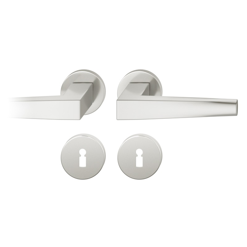 Die Garnitur ist wahlweise als WC/Bad-Garnitur oder als Drücker- bzw. Wechselgarnitur erhältlich. Der Griff wurde in den Werkstoffen Aluminium und Messing umgesetzt. Es gibt diese Garnitur mit runden und quadratischen Rosetten.