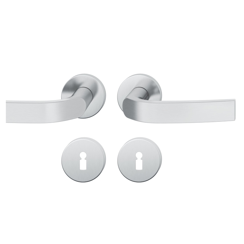 Die Garnitur ist wahlweise als WC/Bad-Garnitur oder als Drücker- bzw. Wechselgarnitur erhältlich. Der Griff wurde in den Werkstoffen Aluminium und Edelstahl umgesetzt.