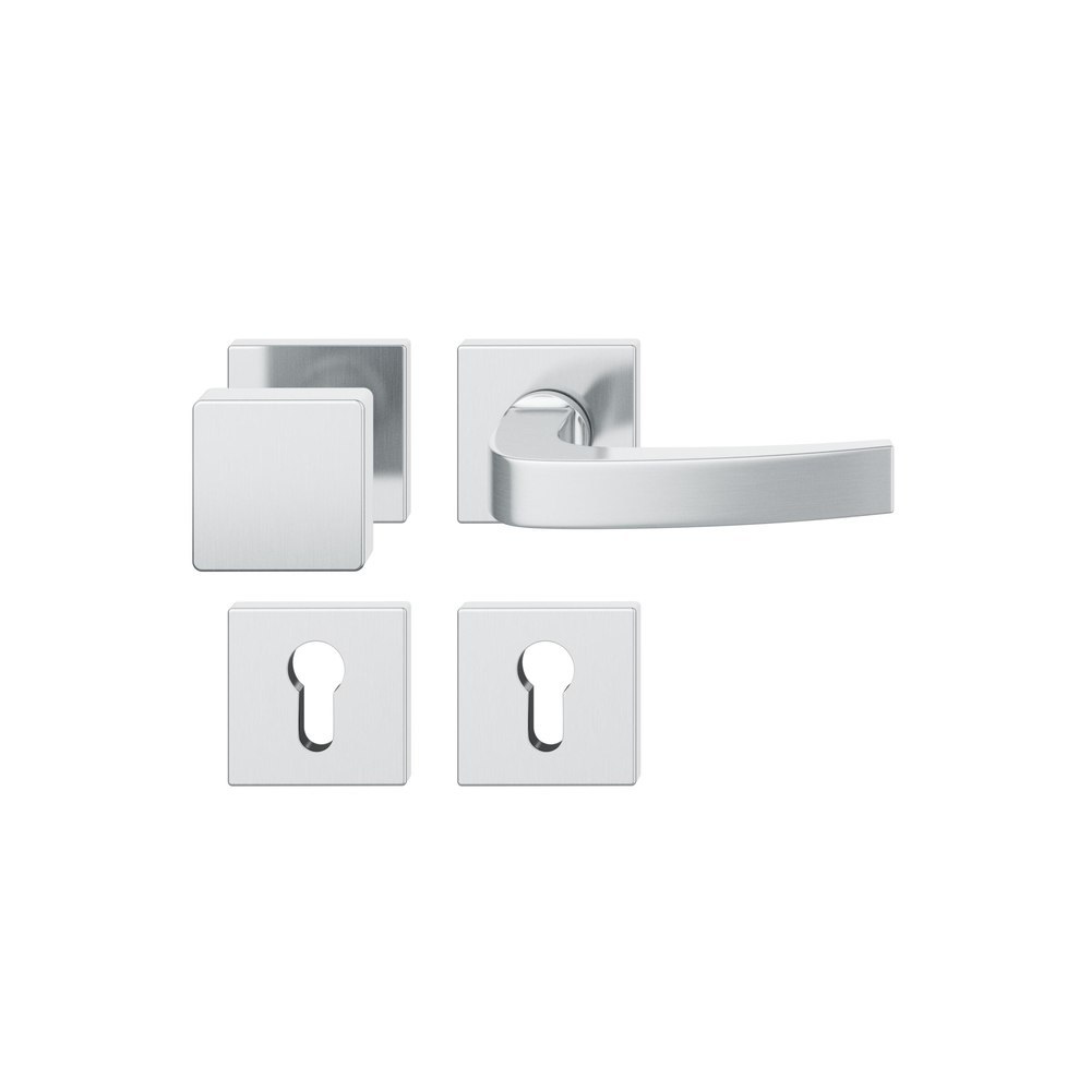 Produktinformationen "FSB Wechselgarnitur 72 1163, Ausführung Türgriff (außen) fest, Rosette, eckig, Profilzylinder gelocht, Vierkant 8mm, DIN Links, Türstärke 39 - 48mm, mit Stütznocken, edelstahl fein matt Ausgleichslager® 3"