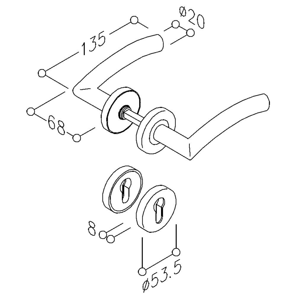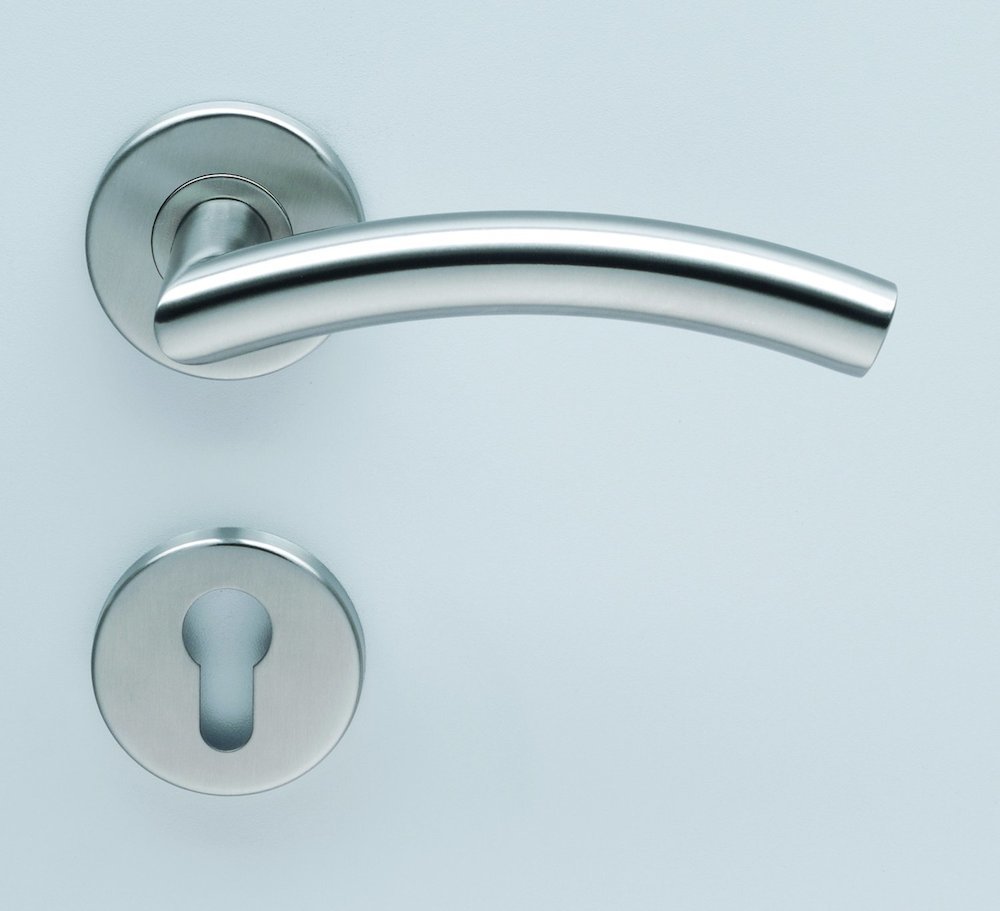 HELO Objekttür Drückergarnitur, Abdeckung: mit Rosetten, Modell: EST.ZG, Modellnummer: 31, Lochung: Profilzylinder gelocht, Vierkant: 8, Material: edelstahl, Farbton: edelstahl, Oberfläche: fein matt, DIN-Richtung: DIN Links-Rechts, Lagerung: Gleitlager, wartungsfrei, festdrehbar, Befestigungstechnik: mit Stütznocken, Befestigungsart: verdeckt verschraubt, Befestigungssystem: Stiftverbindung, Material Unterkonstruktion: Kunststoff-Stahlverbundbau, Anschlagrichtung: Drücker rechts/links verwendbar, Drückerbefestigung: Vierkantstift, Drückerform: gebogen, Drückerdurchmesser: 20 mm, Drückerlänge: 135 mm, Drückerhöhe: 60 mm, Form: rund, Stärke Abdeckung: 8 mm, Türstärke min.: 35 mm, Türstärke max.: 44 mm, Türart: Außentüren, Türwerkstoff: Holz, stahl, Benutzerklasse: Klasse 4, Norm: DIN EN 1906, DIN 18255
