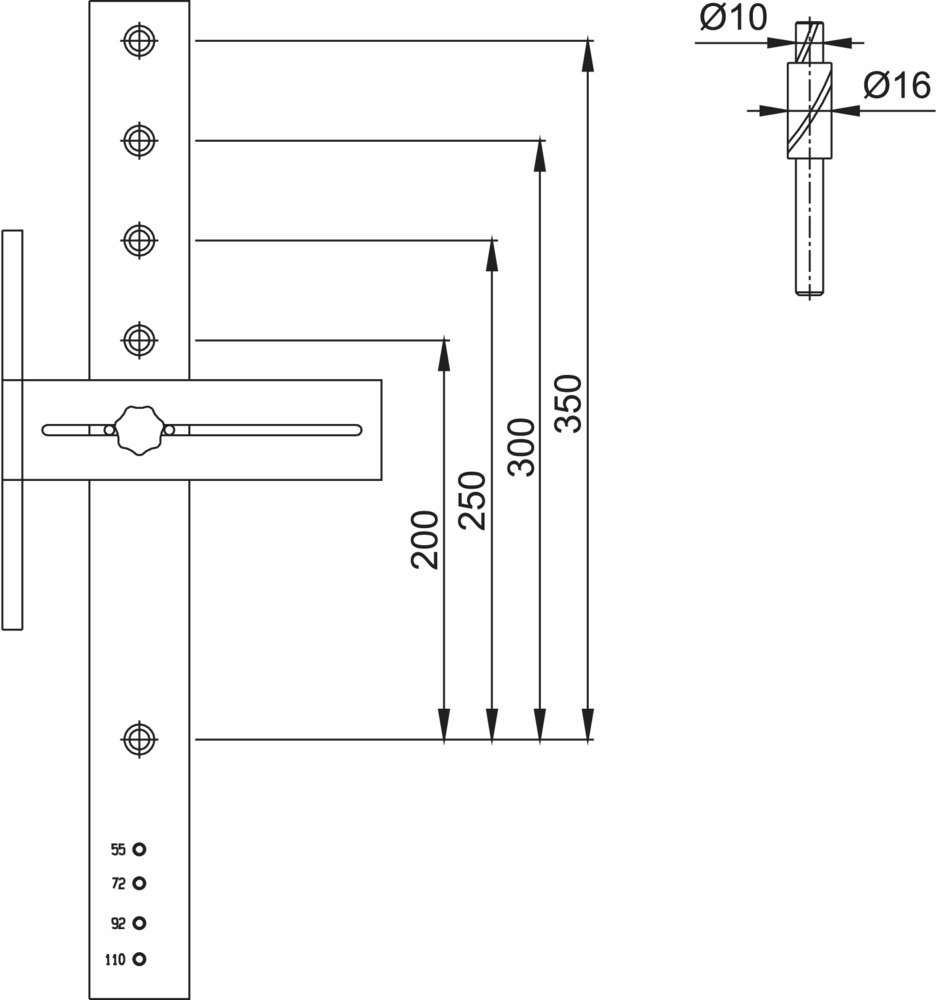 HOPPE Bohrlehre Set 2 BHI-BG-SROS, mit Zentrierdorn, silberfarben