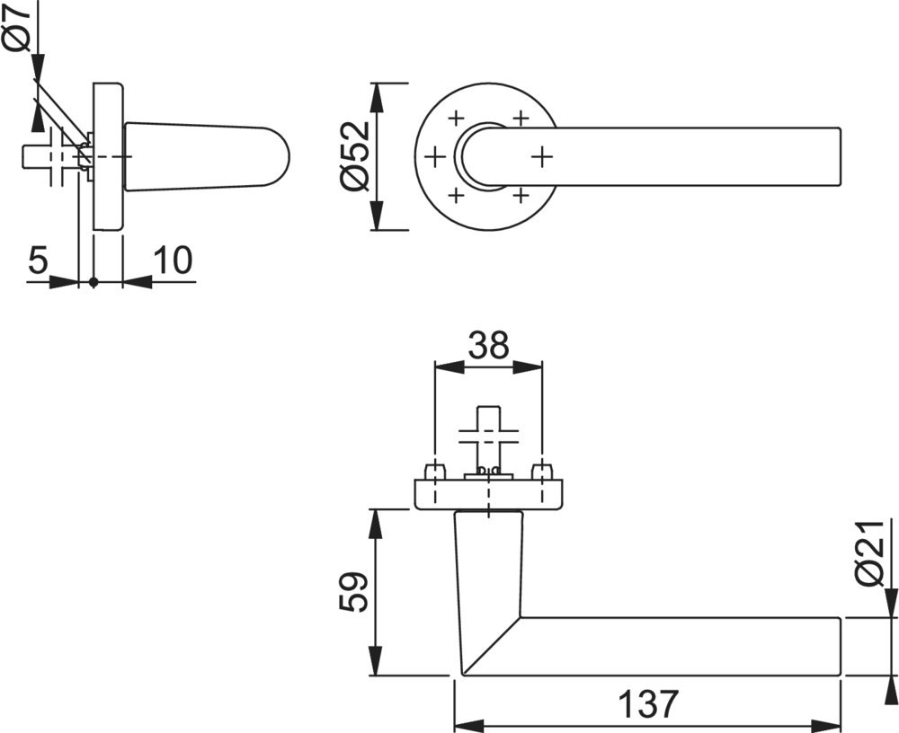 | Befestigungsart Drückerrosette (innen): | verdeckt verschraubt |