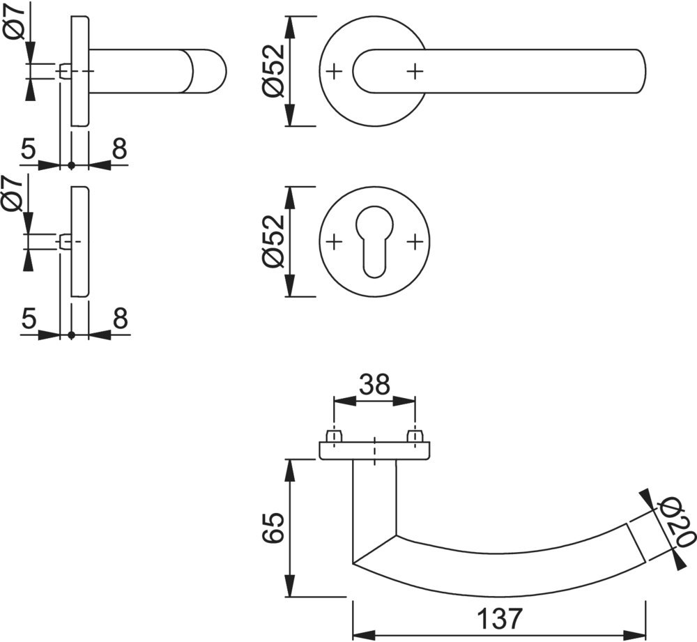 Durchmesser Schlüsselrosette: 52.00 MMT