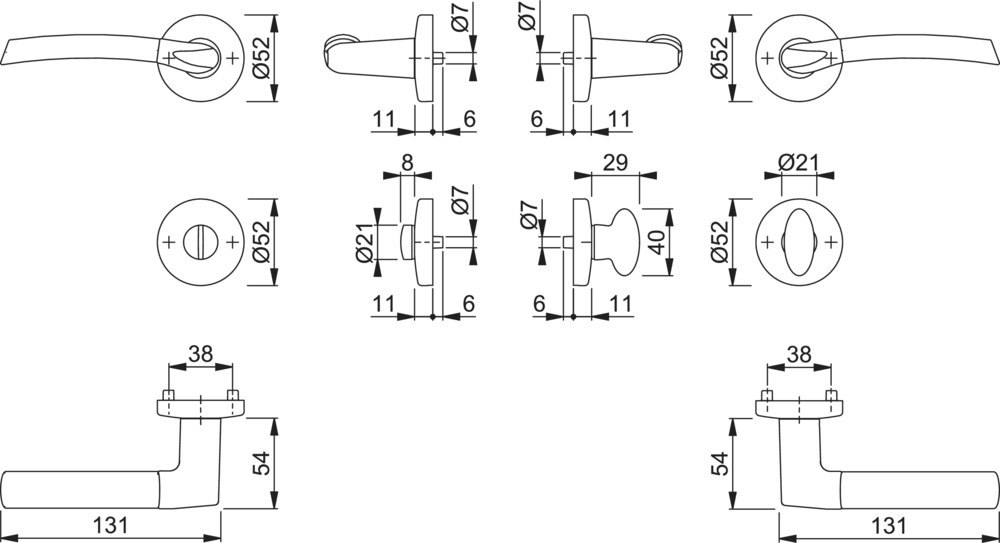 | Höhe Drückerrosette (innen): | 11.00 MMT |