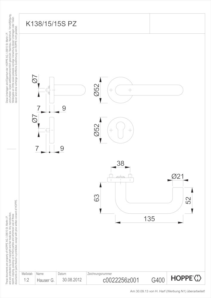 HOPPE Drückergarnitur K138/15/15S,Ros.,rd.,PZ,8,verkehrsw.,TS 40-44