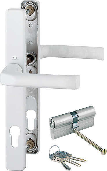 Drückergarnitur London 113/2246/KK; Produkttyp: Drückergarnitur; Produkttyp (Hersteller): Drückergarnitur; Ausführung: Langschild; Befestigungsart: innen sichtbar verschraubt; Befestigungstechnik: mit Stütznocken; Form: eckig; Vierkant: 8 mm; Material: Aluminium; Material Unterkonstruktion: Edelstahl; Form Türgriff (innen): L-Form; Form Türgriff (außen): L-Form; Länge Türgriff (innen): 120 mm; Länge Türgriff (außen): 120 mm; Höhe Türgriff (innen): 54 mm; Höhe Türgriff (außen): 54 mm; Schildbreite außen: 30 mm; Schildbreite innen: 30 mm; Schildlänge außen: 245 mm; Schildlänge innen: 245 mm; Schildstärke außen: 8 mm; Schildstärke innen: 8 mm; Lagerung: wartungsfreies Gleitlager,festdrehbar; Einsatzbereich: Haustür; Türart: Rohrrahmen; Türwerkstoff: Aluminium,Kunststoff; Lochung: Profilzylinder gelocht; Entfernung: 92 mm; DIN-Richtung: DIN Links-Rechts; Farbe: weiß; Farbton: verkehrsweiß; Oberfläche: beschichtet; Ausführung Vierkant: Vierkantstift; Türstärke min.: 57 mm; Türstärke max.: 62 mm