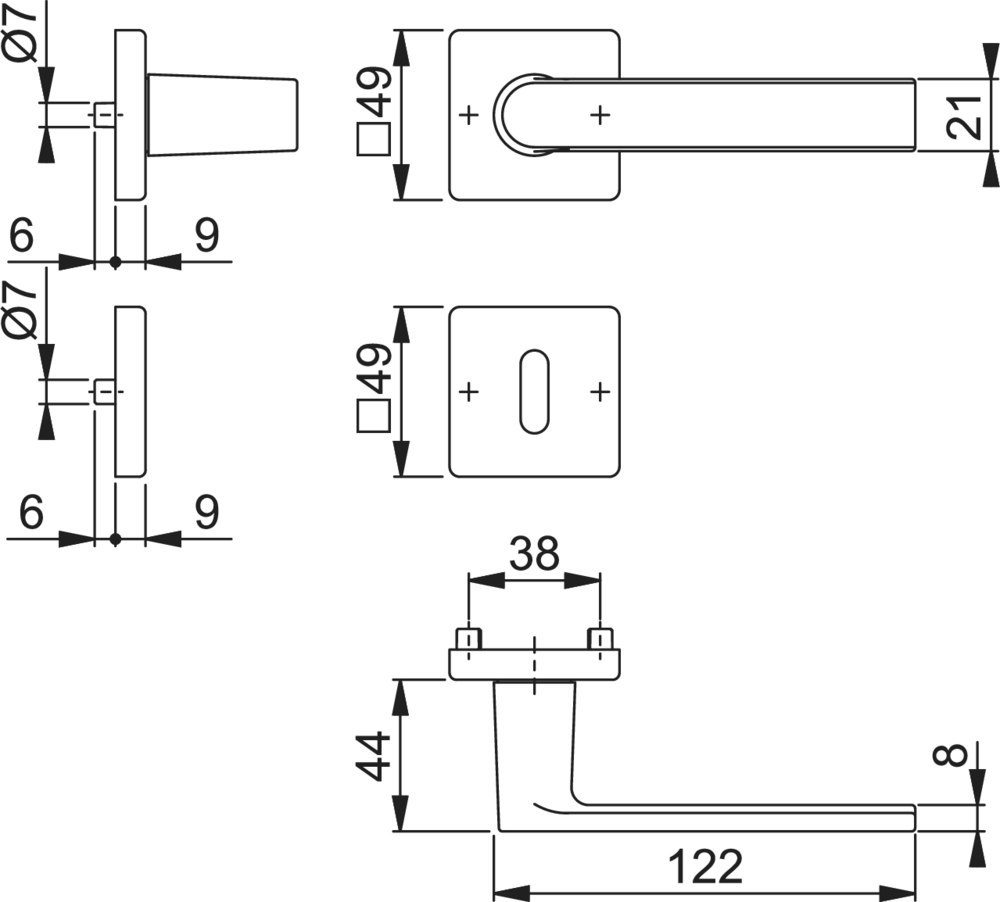 | Höhe Drückerrosette (außen): | 9.00 MMT |