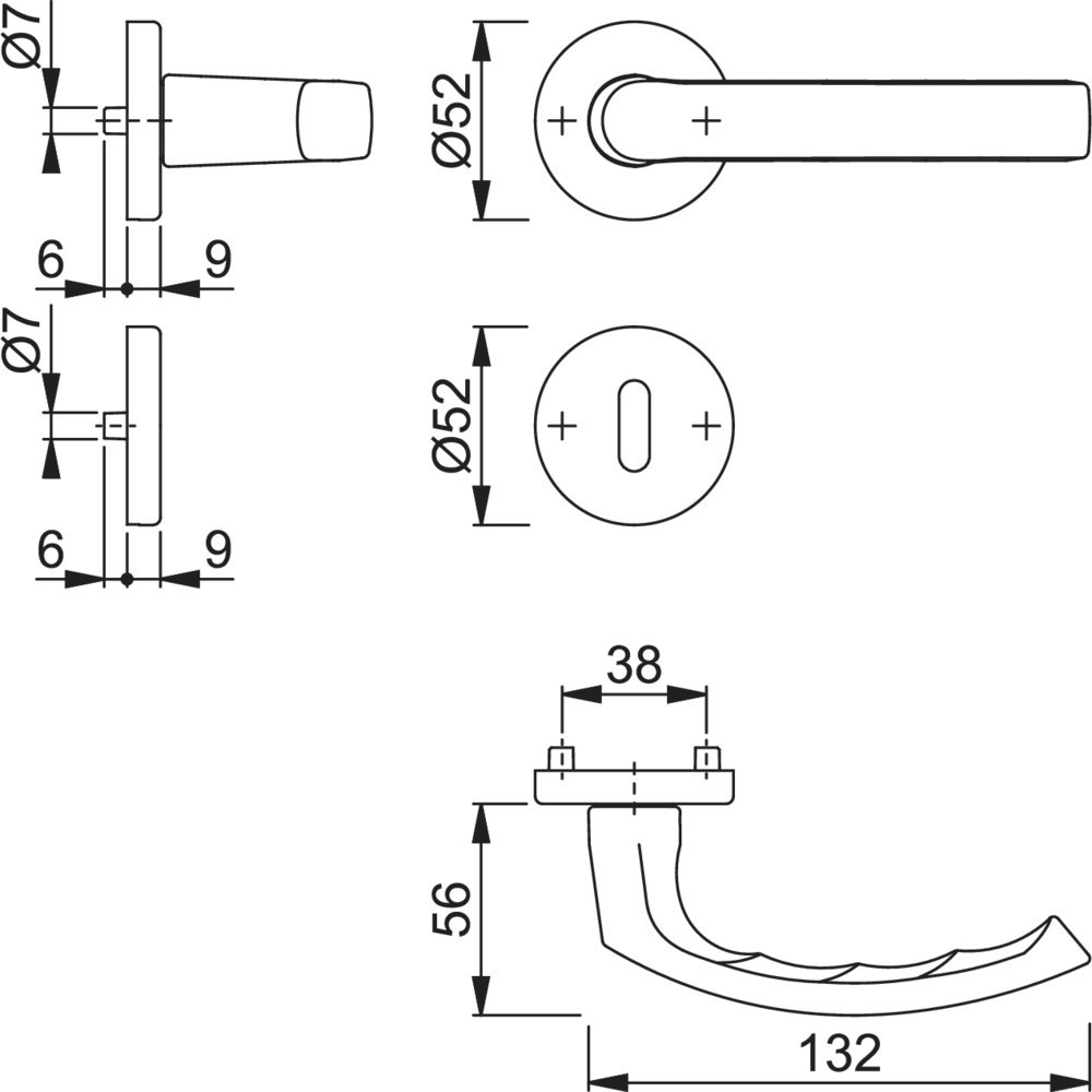 | Höhe Drückerrosette (innen): | 9.00 MMT |