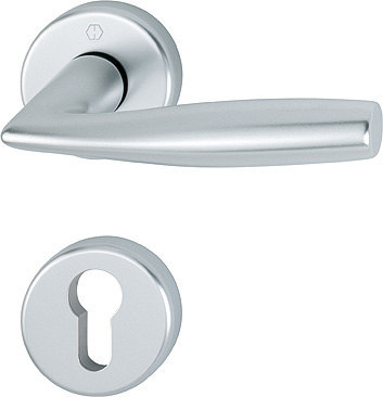 Drückergarnitur Vitória 1515/42KV/42KVS; Produkttyp: Drückergarnitur; Produkttyp (Hersteller): Drückergarnitur; Ausführung: Rosette; Befestigungsart Drückerrosette (außen): verdeckt verschraubt; Befestigungsart Drückerrosette (innen): verdeckt verschraubt; Befestigungsart Schlüsselrosette (außen): verdeckt verschraubt; Befestigungsart Schlüsselrosette (innen): verdeckt verschraubt; Befestigungstechnik: mit Stütznocken; Montageart: aufliegend; Form Drückerrosette: rund; Form Schlüsselrosette (außen): rund; Form Schlüsselrosette (innen): rund; Vierkant: 8 mm; Material: Aluminium; Form Türgriff (innen): L-Form; Form Türgriff (außen): L-Form; Durchmesser Schlüsselrosette: 52 mm; Länge Türgriff (innen): 124 mm; Länge Türgriff (außen): 124 mm; Höhe Türgriff (innen): 58 mm; Höhe Türgriff (außen): 58 mm; Durchmesser Drückerrosette (außen): 52 mm; Durchmesser Drückerrosette (innen): 52 mm; Höhe Drückerrosette (außen): 9 mm; Höhe Drückerrosette (innen): 9 mm; Höhe Schlüsselrosette (außen): 9 mm; Höhe Schlüsselrosette (innen): 9 mm; Lagerung: mit Rückholfeder,wartungsfreies Gleitlager; Einsatzbereich: Objekttür; Türart: Vollblatt; Türwerkstoff: Holz,Stahl; Lochung: Profilzylinder gelocht; DIN-Richtung: DIN Links-Rechts; Farbe: silber; Farbton: naturfarben; Oberfläche: eloxiert; Ausführung Vierkant: Vierkantstift; Türstärke min.: 37 mm; Türstärke max.: 42 mm; Norm: DIN EN 1906; EN 1906 - Gebrauchskategorie: Klasse 3; EN 1906 - Korrosionsbeständigkeit: Klasse 4; Klassifizierungsschlüssel EN 1906: 37-0140A