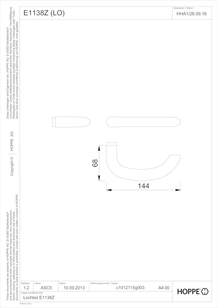 Produktinformationen "HOPPE Drückerlochteil Marseille E1138Z, 8mm,edelstahl matt"