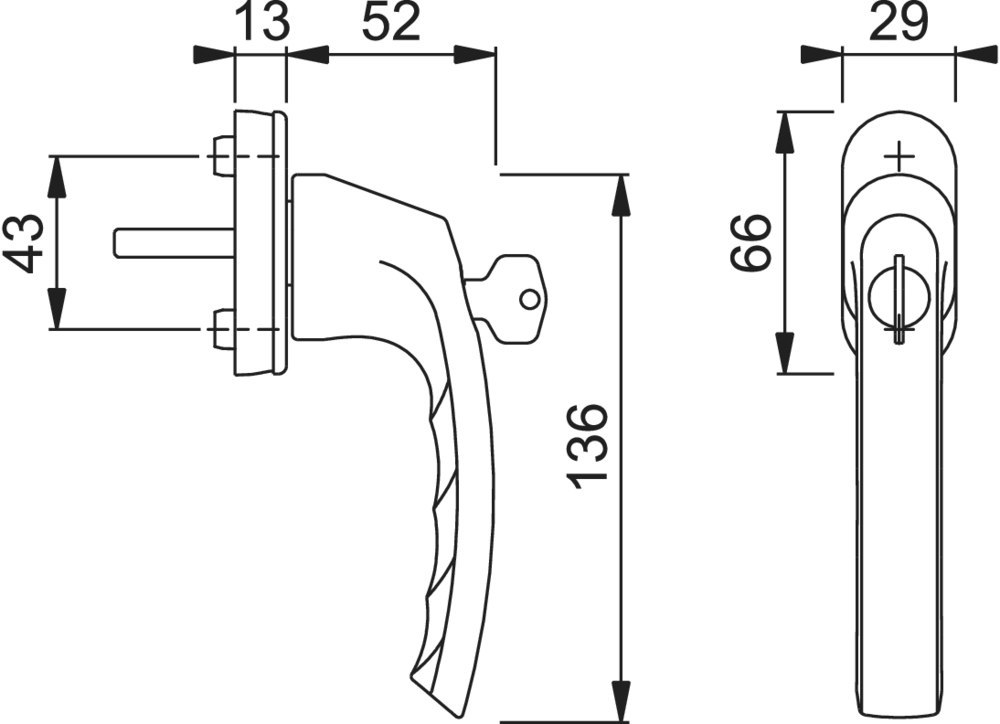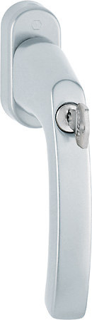 Fenstergriff Luxembourg 099S/U26; Produkttyp: Fenstergriff; Produkttyp (Hersteller): Fenstergriff; Ausführung: abschließbar; Variante TBT-Funktion: TBT4; Rastung: 90°; Stütznocken: mit Stütznocken; Verriegelungsart: mit Drehzylinder,mit automatischer Verriegelung; Material: Aluminium; Montageart: aufliegend; Befestigungsart: verdeckt verschraubt; Anwendung: für nach innen öffnende Fenster und Fenstertüren; Anzahl Schlüssel: 1 St.; Länge: 136 mm; Höhe: 52 mm; Befestigungsabstand: 43 mm; Form Rosette: oval; Breite Rosette: 29 mm; Höhe Rosette: 66 mm; Stärke Rosette: 13 mm; Material Unterkonstruktion: Kunststoff; Einsatzbereich: Drehkipp; Fensterwerkstoff: Holz,Kunststoff,Aluminium; Vierkant: 7 mm; Stift vorstehend: 35 mm; DIN-Richtung: DIN Links-Rechts; Farbe: silberfarben; Farbton: naturfarben; Oberfläche: eloxiert; Aufdruck: mit Logo; Schließung: gleichschließend; Schließungsnummer: 2W-153