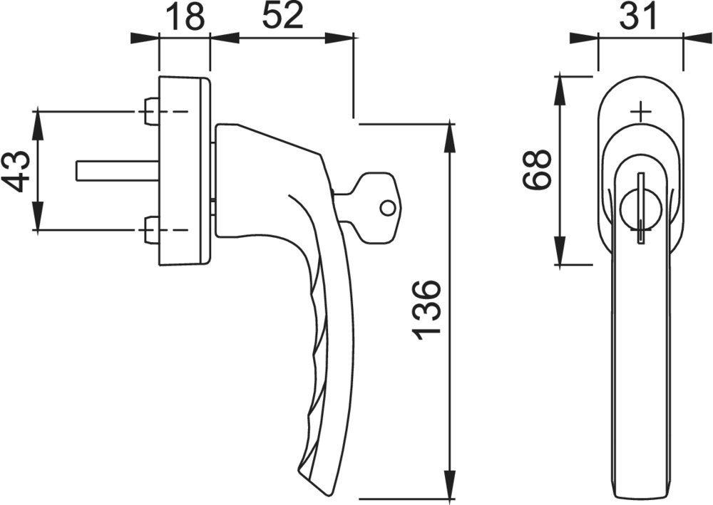 Produktinformationen "HOPPE Fenstergriff Luxembourg 099S/US952 100NM, abschließbar, oval,7/32-42,F8707"
