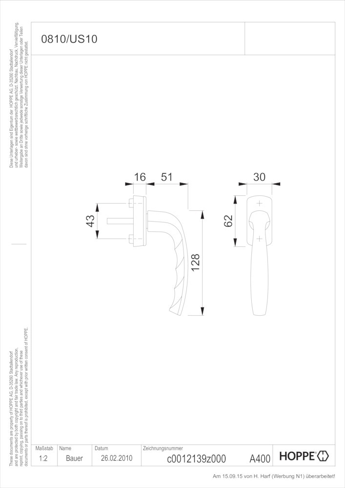 Produktinformationen "HOPPE Fenstergriff New York 0810/US10, Standard, eckig, 7/32-42,F1"