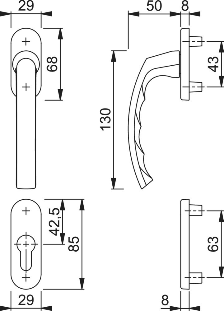 Produktinformationen "HOPPE Fenstertür-Halbgarnitur Liège 0540/66N/66NS, N 10, Profilzylinder gelocht"