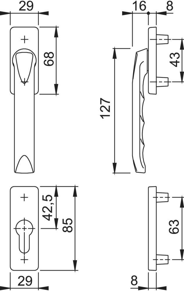 Halbgarnitur London 013KH/51N/51NS; Ausführung: abschließbar,mit Rosetten; Material: Aluminium; Vierkant: 7 mm; Rastung: ohne Rastung; Befestigungsart: verdeckt verschraubt; Befestigungstechnik: mit Stütznocken; Lieferung: mit Vierkantstift,ohne Schrauben; Einsatzbereich: Fenstertür; Basis: Halbgarnitur; Farbe: braun; DIN-Richtung: DIN Links-Rechts; Modellnummer: 013KH/51N/51NS; Nockendurchmesser: 10 mm; Sockelbreite: 29 mm; Sockelhöhe: 68 mm; Sockelstärke: 8 mm; Befestigungsabstand: 43 mm; Farbton: dunkelbraun seidenglänzend; Lochung: Profilzylinder gelocht; Sockelausführung: mit eckiger Rosette; Griffform: gerade; Grifflänge außen: 127 mm; Griffhöhe außen: 16 mm; Breite Schlüsselrosette außen: 29 mm; Länge Schlüsselrosette außen: 85 mm; Außengriff/Innengriff: außen flach; Funktion: Standard; Fensterwerkstoff: Holz,Kunststoff,Aluminium; Aufdruck: mit Logo
